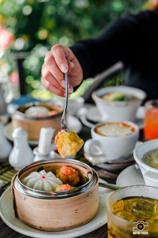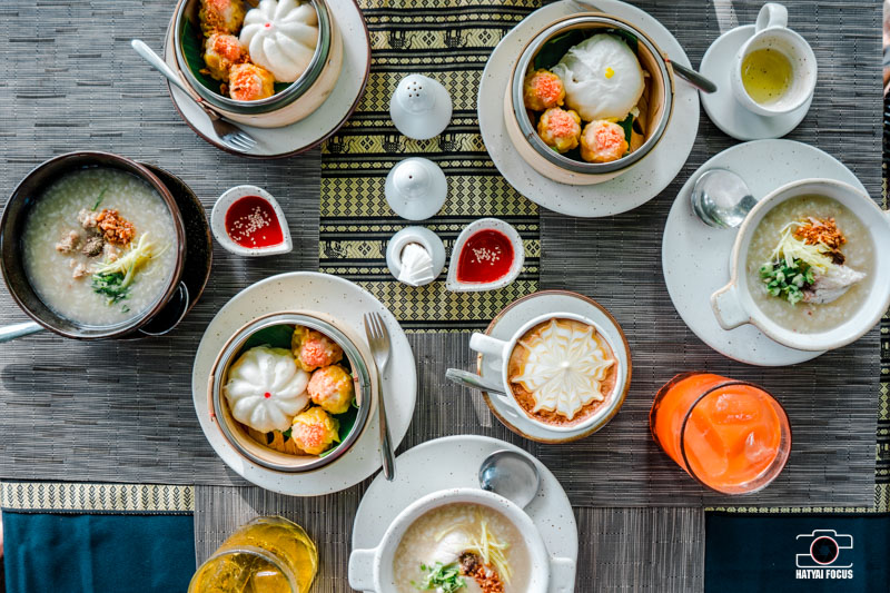 อาหารเช้าของที่นี่มีทั้งชุดอาหารไทย และชุดอเมริกันให้เลือก มื้อเช้าแบบนี้น้องอุ๋งขอจัดเป็นชุดอาหารไทยอย่างโจ๊กกับติ่มซำ