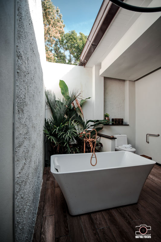 มองขึ้นไปจะเห็นว่าเป็นห้องน้ำแบบ open air นะจ๊ะ นอนแช่ในอ่างชิลล์ ๆ แลดาวยังได้เลยเพื่อน ๆ บอกได้คำเดียวว่าฟินนนน