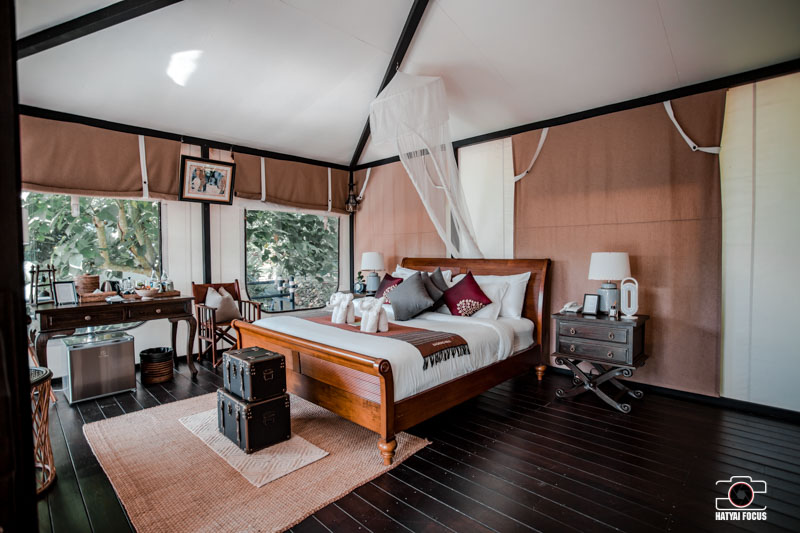 ต่อไปเป็นห้องสุดหรู เต็นท์สไตล์บูทีคซาฟารีเต็นท์ "Explorer Tent" มีสิ่งอำนาวยความสะดวกครบครันไม่ว่าจะเป็นแอร์ ทีวี ตู้เย็น ฯลฯ พร้อมห้องน้ำส่วนตัวสุดหรู