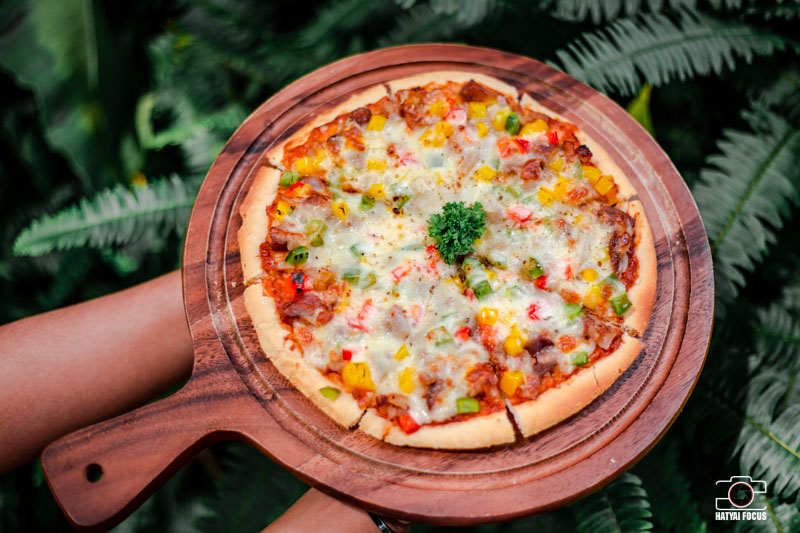 เมนูสุดท้ายกับพิซซ่าหมูย่าง แป้งบางกรอบ เนื้อหมูย่างดีมาก