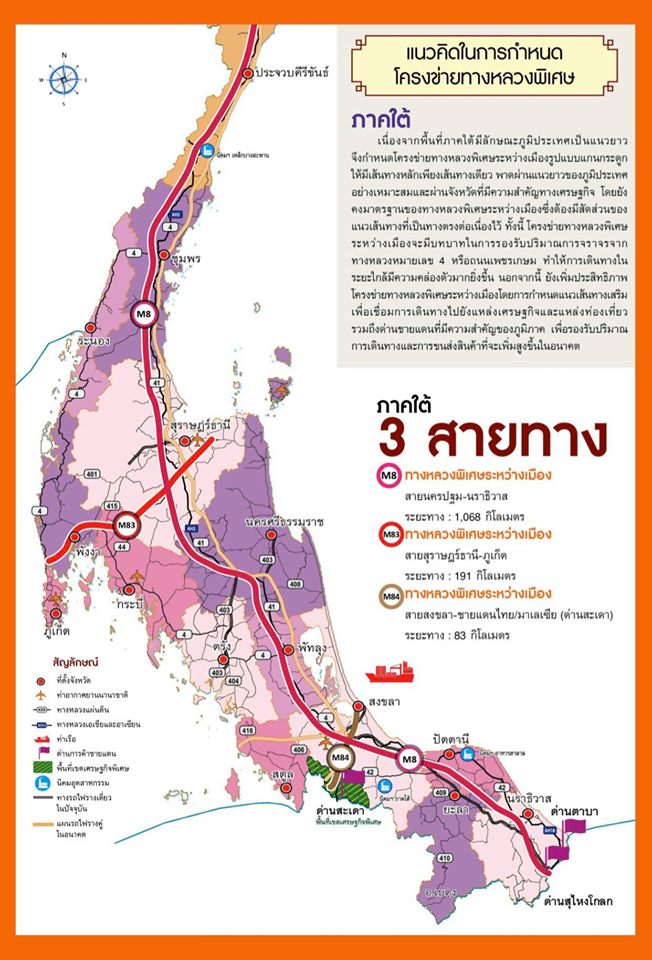 สาย M92 วงแหวน กรุงเทพ รอบ 4 นครชัยศรี-สุพรรณบุรี-ลพบุรี-สระบุรี-นครนายก-ปราจีนบุรี-ฉะเชิงเทรา ซึ่งช่วงนี้จะเป็นส่วนหนึ่งที่ต่อไปสาย M8 และ เป็นกิ่งของ M81 ที่ก่อสร้างไว้รอ ที่นครชัยศรี ภาคใต้ สาย M8 นครปฐม-นราธิวาส ซึ่งเป็นสายหลักเชื่อมต่อภาคใต้ ซึ่งตอนนี้ เตรียมจะมีการประมูล PPP ช่วงแรก นครปฐม-ชะอำ สาย M83 สุราษฎร์ธานี-ภูเก็ต ซึ่งเท่าที่ดูมีการใช้เขตทางร่วมกับทางหลวง 44 Southern seaboard บางส่วน และแยกไปพังงา ก่อนจะไปจบก่อนข้ามสะพานเข้าภูเก็ต สาย M84 สงขลา-สะเดา ซึ่งเป็นเส้นทางที่สำคัญมากในการพัฒนาการค้าชายแดน ไทย-มาเลเซีย จะทำหาดใหญ่-สะเดาก่อน ช่วยส่งเสริมด่านชายแดนที่มีมูลค่ามากที่สุดในประเทศ และต่อกับมอเตอร์เวย์ของมาเลเซีย