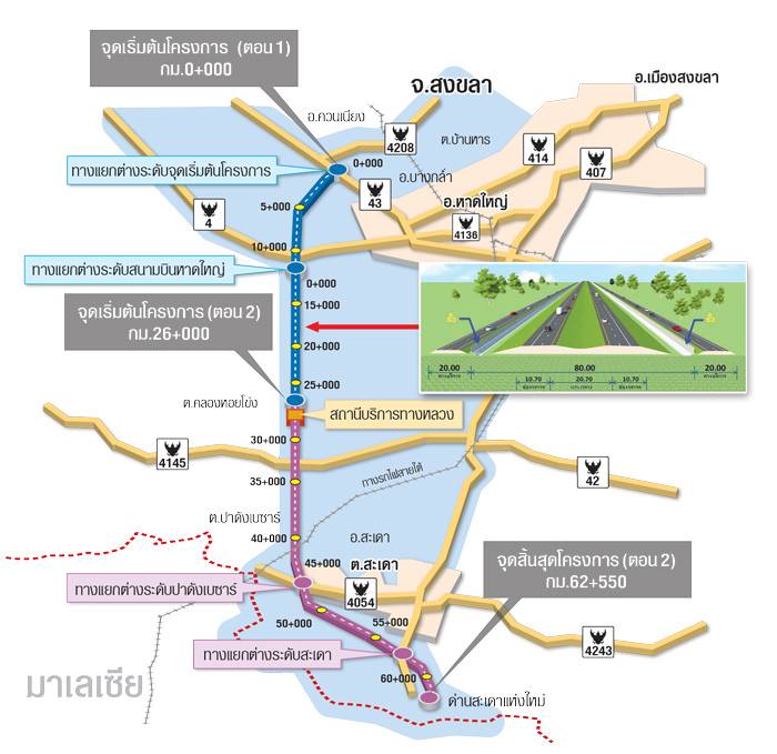 3.ปาดังเบซาร์ 4.ด่านสะเดา 2 ซึ่งระบบเป็นระบบผิด เก็บเงินตามระยะทาง ซึ่งมีระบบจ่ายเงินทั้ง Auto และ จ่ายเงินสด โครงการนี้เป็นโครงการ PPP คือร่วมลงทุนกับเอกชน โดยรัฐเวนคืนให้ แล้วเอกชนลงทุนก่อสร้าง เก็บค่าบริการ และดูรักษาตลอดเวลา 30 ปี ซึ่งจากข่าวมีนักลงทุนสนใจเข้าร่มลงทุนหลายชาติ สายนี้จะช่วยร่นเวลาเดินทาง หาดใหญ่-สะเดา จาก 1 ชั่วโมง ให้เหลือแค่ 30 นาทีได้ แน่ๆ มีประโยชน์กับเศรษฐกิจแน่นอนครับ ซึ่งตามแผน โครงการจะเปิดให้ริการในปี 2567