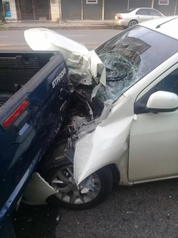 อุบัติเหตุครั้งนี้จึงเป็นการชนของรถ 3 คันรวด โชคดีที่คนขับเก๋งไม่เป็นไร (บาดเจ็บเล็กน้อย) สุนัขก็อยู่รอดปลอดภัย แต่อาจจะโชคร้ายหน่อยที่ต้องจ่ายค่าเสียหายทั้งรถของตัวเอง และรถคนอื่นอีก 2 คัน แต่ถ้าคิดในแง่ดีถือว่าฟาดเคราะห์ทรัพย์สินเสียหายยังดีกว่าบาดเจ็บหนัก