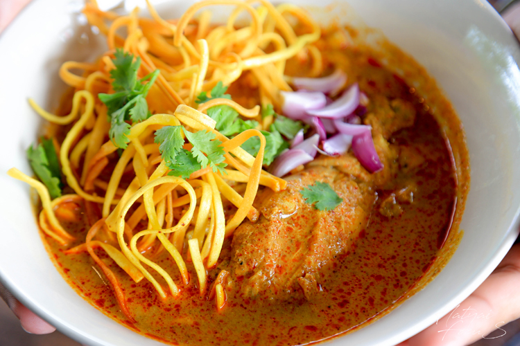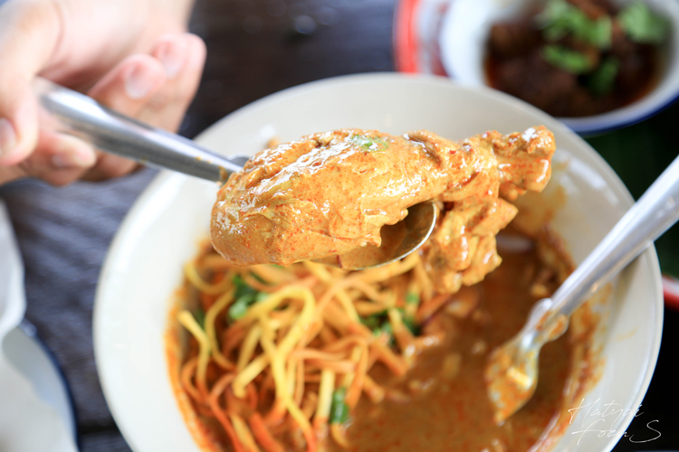 ขอเริ่มกันที่เมนูแรกเลยแล้วกัน บ้านเราคงรู้จักกันดีกับเมนู ข้าวซอยไก่ ทำมาจากกะทิคั้นสด ปรุงรสด้วยเครื่องแกงสูตรเฉพาะของร้าน เสิร์ฟมาในชามที่มีหมี่กรอบ ทานคู่กับพริกคั่วหอม ๆ เพิ่มความจัดจ้านได้อย่างลงตัว