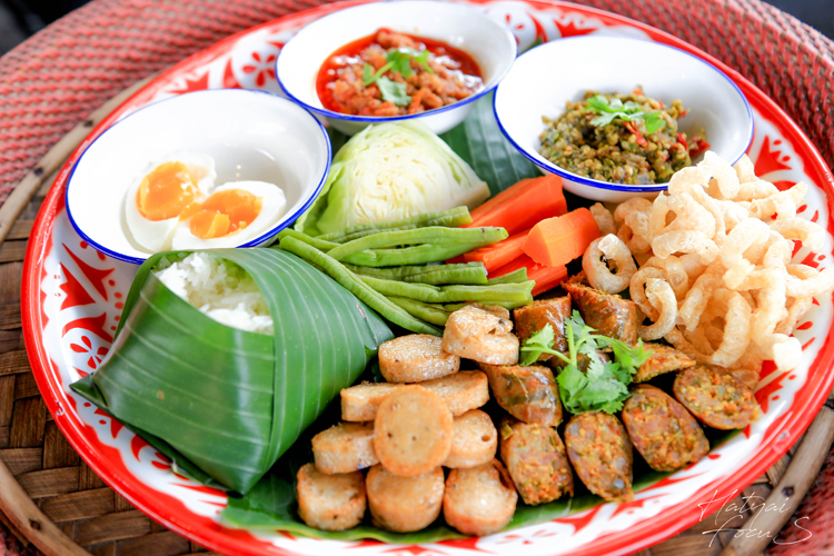 ไส้อั่ว ย่างมาแบบเหลืองกรอบนอกแน่นข้างใน ทานคู่กับน้ำพริกหนุ่ม และแคปหมู พร้อมผักสดเคียง อร่อยวางไม่ลงเลย
