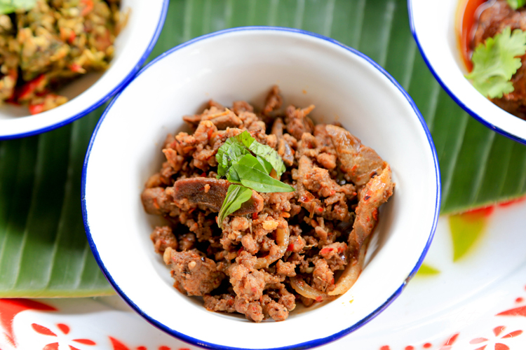 ชื่อเมนูสุดเคยอย่างลาบ ที่นี่ก็มีให้ทานนะ แต่เป็นลาบของทางภาคเหนือ เรียกว่า ลาบเหนือคั่ว ที่ร้านบอกว่าเมนูนี้ใช้พริกลาบและเครื่องเทศที่ส่งตรงมาจากเชียงรายเลย ตอนทานจะทานคู่กับผักสด