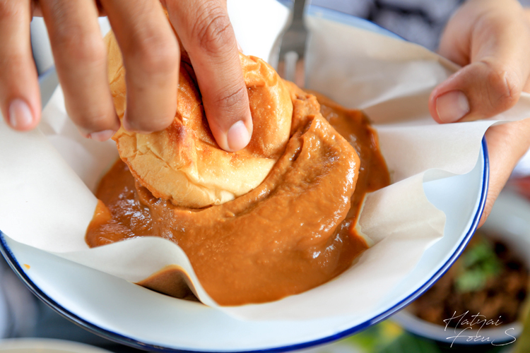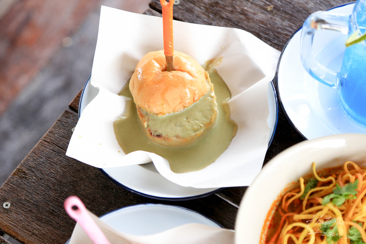 ชิมของคาวเสร็จแล้ว มาปิดท้ายกันด้วยของหวานบ้าง ที่นี่มีขนมปังปิ้ง ไส้ต่าง ๆ ให้เลือกเยอะมาก ขนมปังที่ปิ้งด้วยเตาถ่าน ทาเนยหอม ๆ และราดมาด้วยไส้ต่าง ๆ ของทางร้าน ไม่ว่าจะเป็นใบเตย ชาเย็น บอกเลยว่าเข้มข้น หอมหวานสุด ๆ