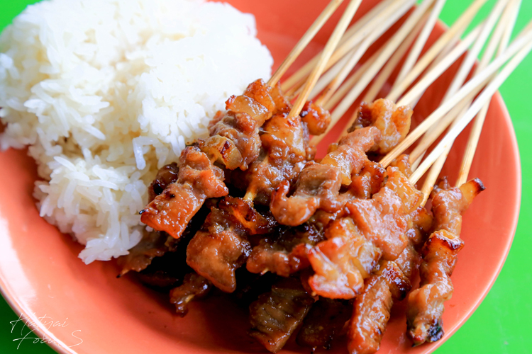 หมูปิ้งของทางร้านจะเป็นไม้ที่พอดีคำ รสชาติเข้มข้น ไม่หวานจนเกินไป หอมเครื่องเทศ หมูนุ่ม เนื้อติดมันไม่มาก ทานแล้วไม่รู้สึกเลี่ยน
