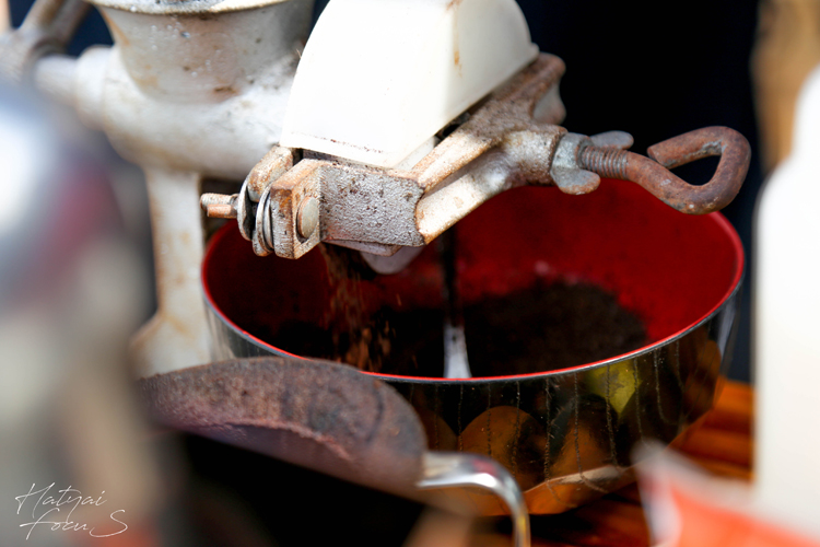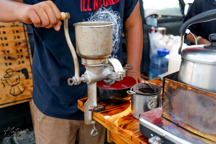 กาแฟของร้านมุ่งมั่น จะใช้เมล็ดกาแฟสด ที่เราจะเห็นกรรมวิธีทั้งบด ทั้งชงต่อหน้าเราเลย