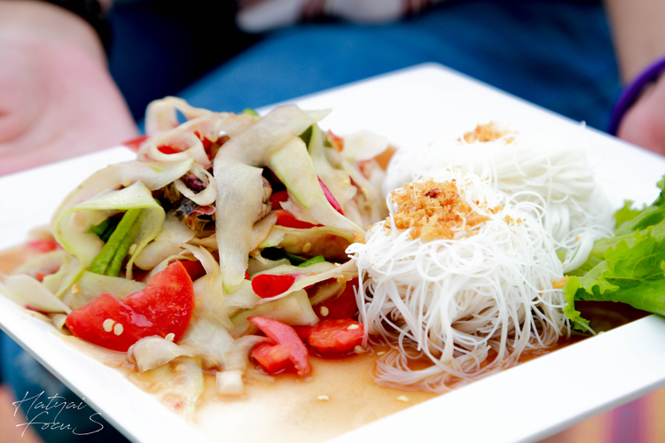 “ตำหลวงพระบาง” ราคา 60 บาท ขอสารภาพตามตรง แอดเพิ่งเคยลองชิมเมนูนี้เป็นครั้งแรก เป็นส้มตำที่ตำจากแตงกวาที่ฝานเป็นแผ่น ๆ กรุบกรอบแบบฉ่ำ ๆ ตามแบบฉบับของแตงกวา