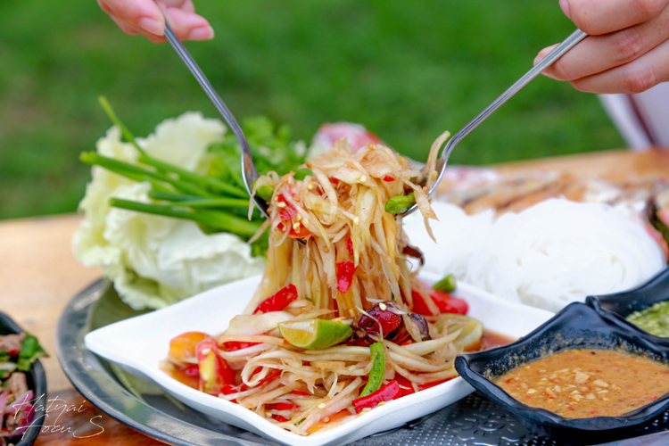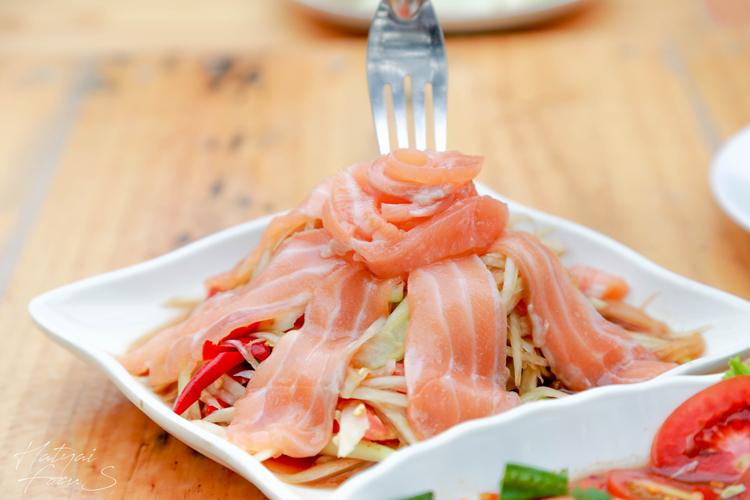 "ตำปลาร้าปลาแซลมอน" ส้มตำแซ่บ ๆ กับเนื้อแซลมอนนุ่ม ๆ คุณภาพอย่างดี บอกเลย ฟินมากกก ยกนิ้วให้เลย