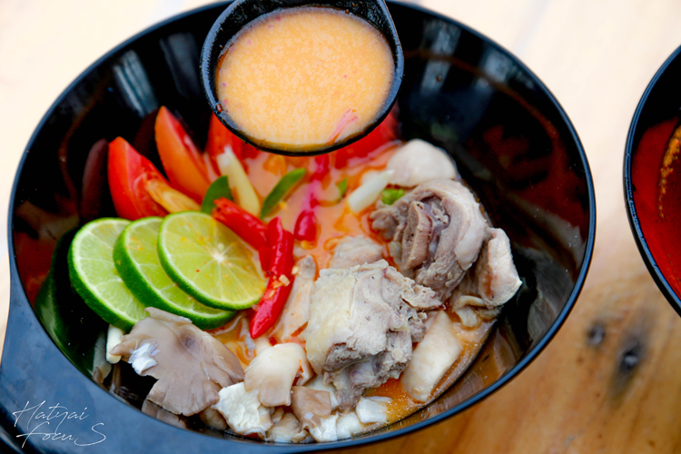 ค่อย ๆ ราดน้ำต้มยำลงไป