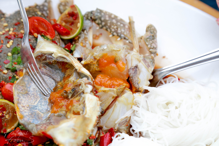 ปลาสด เนื้อหวาน นุ่มมาก ราดน้ำจิ้มซีฟู้ดเข้าไปก็อร่อยคูณสอง ได้รสชาติหวาน(จากเนื้อปลา) เปรี้ยว เผ็ด กินกับผักกรอบ ๆ เคี้ยวกรุบ ๆ ใครชอบกินปลาต้องห้ามพลาดเมนูนี้เชียว