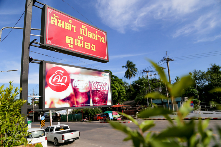 มาทาง 4 แยก...แล้วตรงมาทางสะพานท่าเคียน ก่อนถึงสะพานก็จะเจอร้าน “ส้มตำ เป็ดย่าง คูเมือง”(ร้านริมน้ำเก่า) ร้านใหญ่ บรรยากาศดี ปลอดโปร่ง และที่สำคัญเวลานั่งตอนยามเย็นก็จะได้บรรยากาศชิลล์ ๆ ริมคลอง ลมพัดเบา ๆ ชมรถบ้าง ชมคลองบ้าง เพลินทีเดียวเชียว