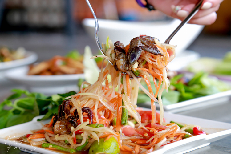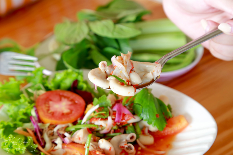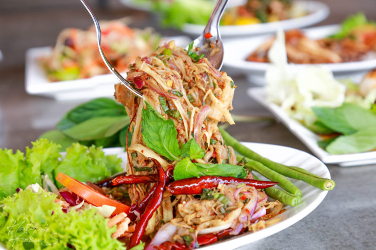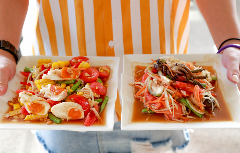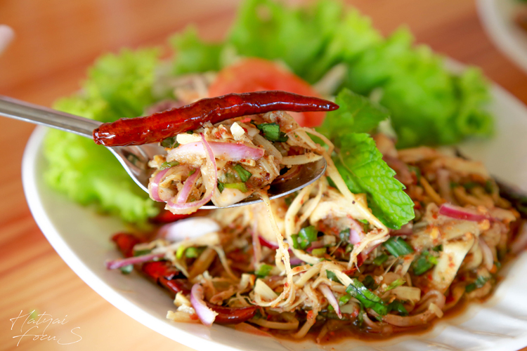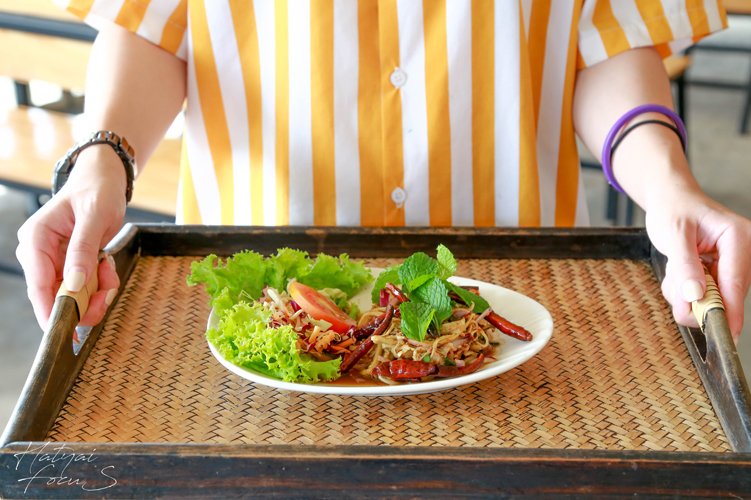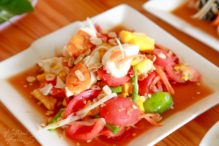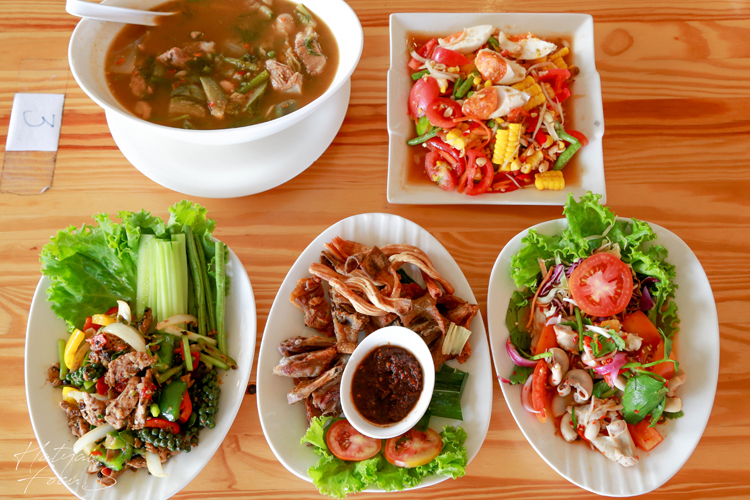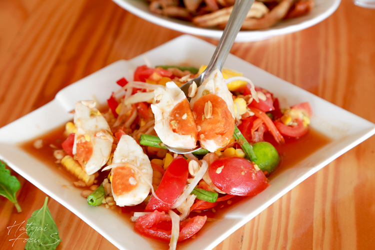 อย่างที่เราบอกไปแล้วว่าร้านนี้ดังในเรื่องของเป็ดย่าง แต่ถ้ากินเป็ดย่างและขาดส้มตำก็คงเหมือนมาไม่ถึง เพราะฉะนั้นเราต้องเพิ่มความแซ่บกันซักหน่อย ด้วยเมนูที่เห็นแล้วเปรี้ยวปาก สั่งเลย “ยำ ตำ อร่อยถึงรสอีสาน”