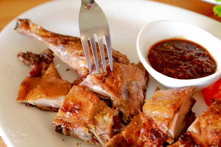 ขอบอกไว้ก่อนนะว่าใครมาร้านนี้ต้องห้ามพลาด เป็ดย่างที่มีสูตรมาจาก จ.บุรีรัมย์ เราสามารถอร่อยได้ใกล้ ๆ ไม่ต้องไปไกลถึงบุรีรัมย์ รสชาติจะมีเอกลักษณ์เฉพาะ ใช้เวลาและความพิถีพิถันย่างกับเตาถ่านในอุณภูมิที่ทางร้านกำหนด จึงจะได้เป็ดย่างที่เนื้อแห้งแต่นุ่ม และหนังยังกรอบอีกด้วย ถ้าใครที่ยังไม่เคยลอง อย่าลืมมาลองให้ได้นะ