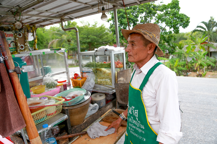 ระหว่างรอลุงตำส้มตำก็ชวนคุณลุงพูดคุยกันตามประสาคนอารมณ์ดี ลุงบอกว่าลุงไพ (อำไพ อัคสี) ตอนนี้อายุ 60 ปีแล้ว บ้านเดิมเป็นคนบึงกาฬ(หนองคาย) ก่อนมาเป็นพ่อค้าขายส้มตำที่มาอยู่หาดใหญ่ถึง 14 ปีนั้น คุณลุงเคยเป็นผู้ใหญ่บ้านมาก่อน