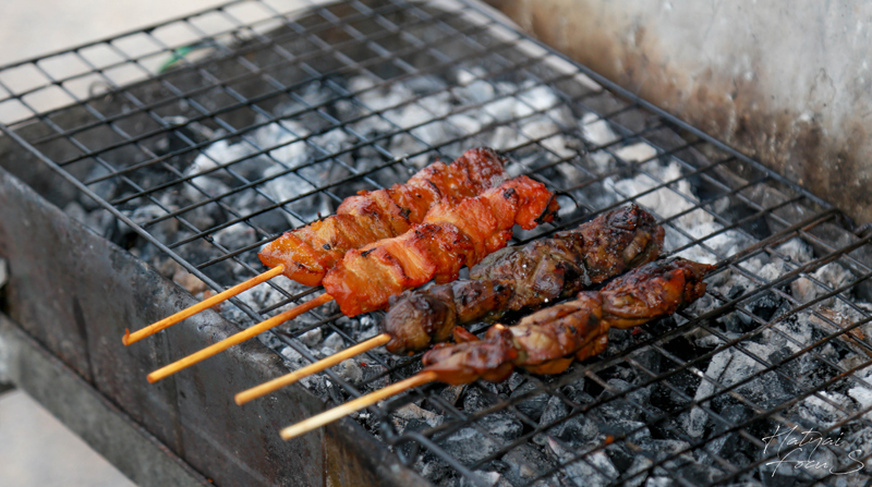 ส้มตำคลายเครียด ยิ่งกินยิ่งรวย รวยแล้วไม่เลิก ยิ่งหน้างอ ยิ่งรอนาน “หาเช้ากินค่ำ” ระหว่างเดินทางกลับจากน้ำตกโตนเรือ บ้านวังพา ในช่วงเย็นวันหนึ่ง เราพบกับร้านส้มตำที่วางขายอยู่บนตุ๊กตุ๊ก พร้อมสโลแกนสะดุดุตา พ่อค้าที่ตำส้มตำอย่างอารมณ์ดี และลูกค้าที่มุงอยู่เต็มคันรถ ทำให้เราอดไม่ได้ที่จะแวะอุดหนุนและเข้าไปลิ้มลองความอร่อยของส้มตำร้านตุ๊กตุ๊กกัน