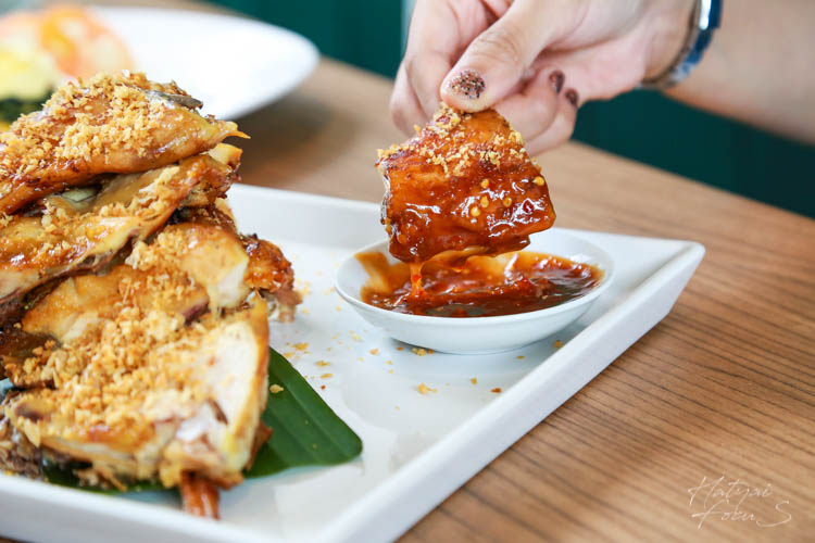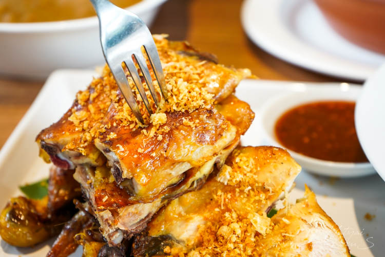 ปิดท้ายอาหารจานหลักคือ ไก่ย่างเขาสวนกวาง เป็นสูตรเด็ดของทางร้านมาจากขอนแก่น เนื้อจะนุ่มหนังจะกรอบกับน้ำจิ้มไก่รสเด็ด