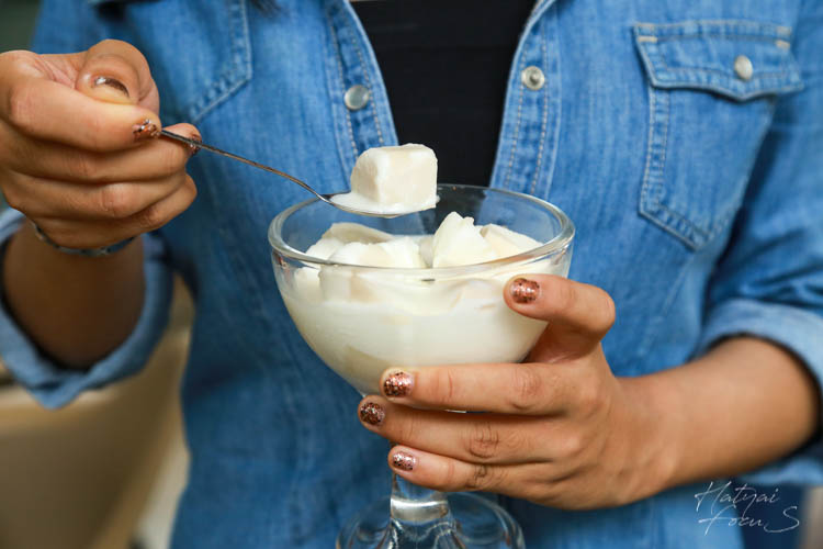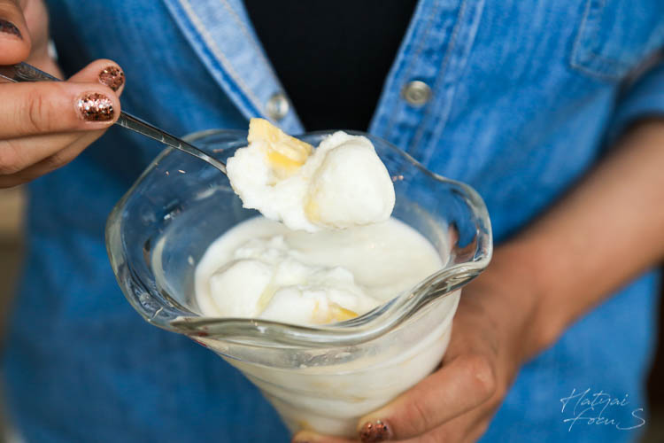 ทุเรียนนมสด จะนำทุเรียนไปแช่ฟรีซเป็นก้อนสี่เหลี่ยม และราดด้วยนมสด จะได้ฟิลเหมือนเรากินข้าวเหนียวทุเรียนแบบนั้นเลยนะ สายทุเรียนต้องห้ามพลาดเลยจ้า