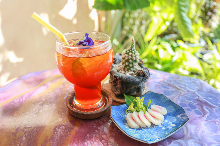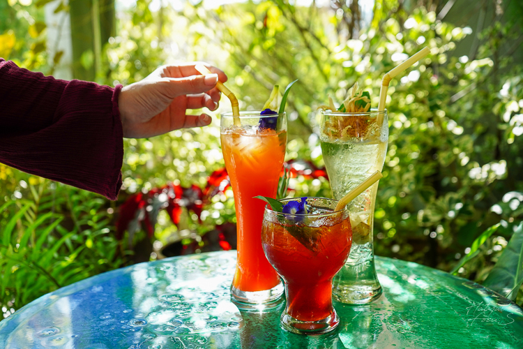 ขนมและน้ำที่นี่ก็ขึ้นชื่อเรื่องความอร่อยนะ แต่เราอิ่มมาจากที่อื่นกันบ้างแล้ว เราเลยลองสั่งเป็นชาดอกบัว น้ำฟรุตพั้นซ์ และน้ำ...โซดา หวาน ๆ ซ่า ๆ ดับร้อนกันซักแก้ว