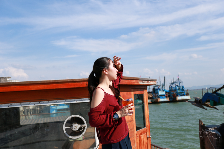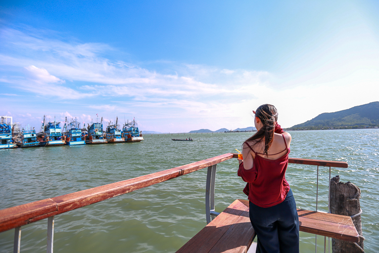 เรืออยู่หลังร้านลอยอยู่ในทะเลสาบสงขลานี้แหละ สามารถขึ้นไปถ่ายรูปได้ตลอดเวลา