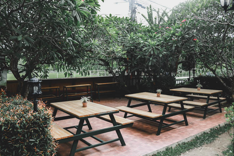 มีที่นั่งแบบรับลมเย็น ๆ ชิลล์ ๆ ภายนอกร้าน และยังมีเมนูอาหารหลากหลายให้เราได้เลยกันอีกด้วย