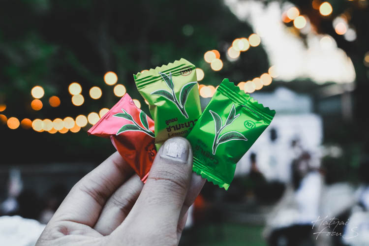 ลูกอมทำจากชาอู่หลง รสชาติหวานหน่อย ๆ ได้กลิ่นของชา กินแล้วทำให้รู้สึกชุ่มคอ