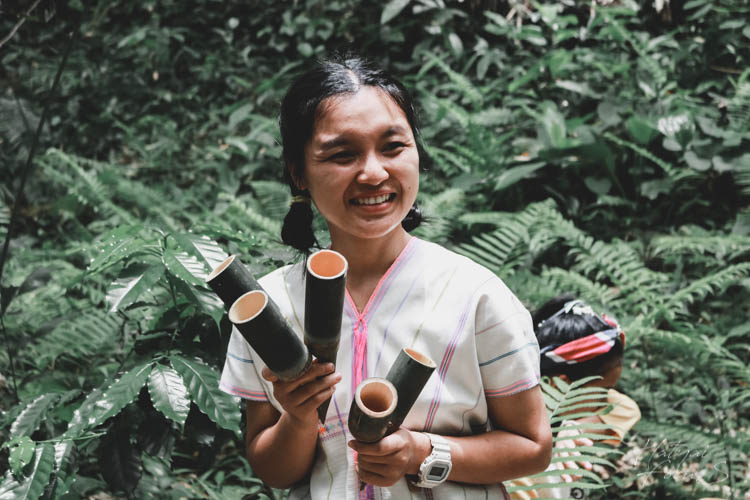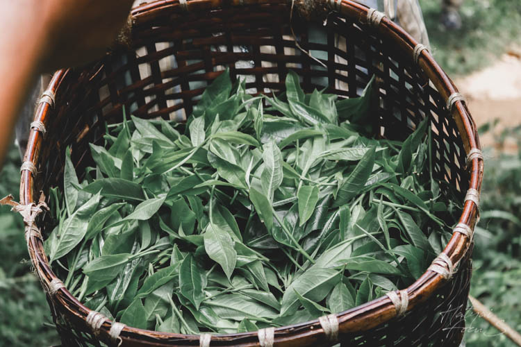 เดินไปเรื่อย ๆ ก็เห็นชาวบ้านเดินออกมาจากป่าพอดี เห็นใบชาเต็มตะกร้าเลยจ๊ะ