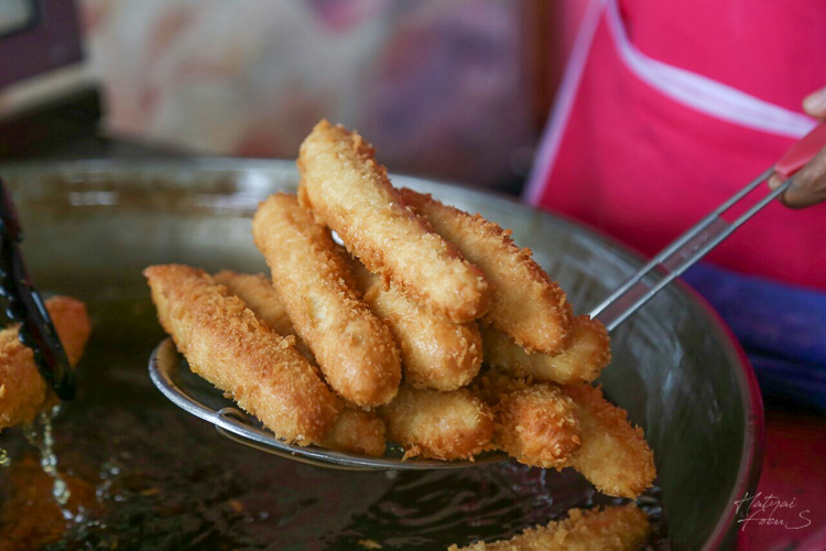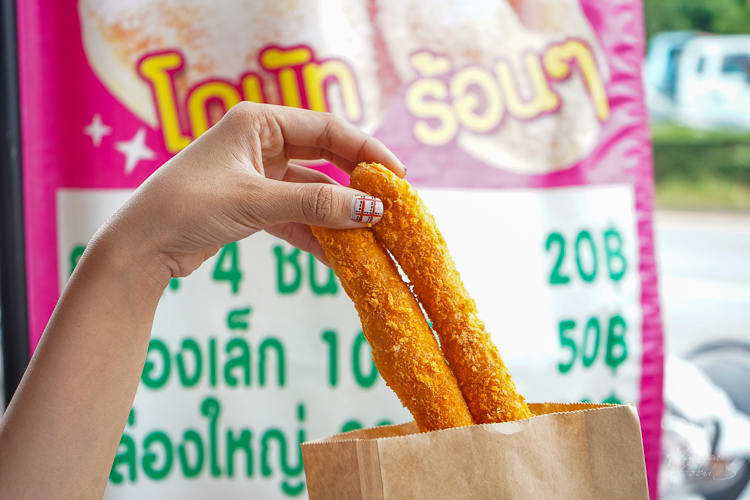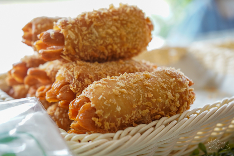 ต่อกันที่เมนูที่ 2 เป็นเมนูสติ๊ก แป้งนำไปคลุกเกร็ดขนมปังและทอด