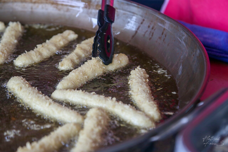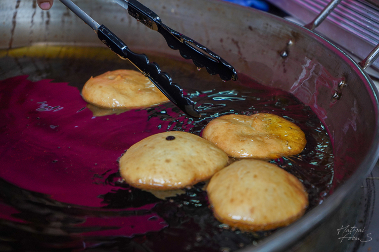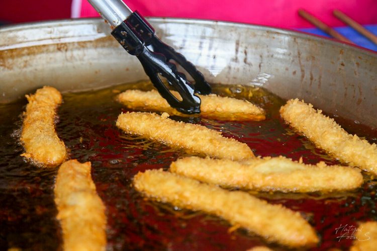แป้งยังไส้นำไปทอดในมน้ำมันร้อน ๆ