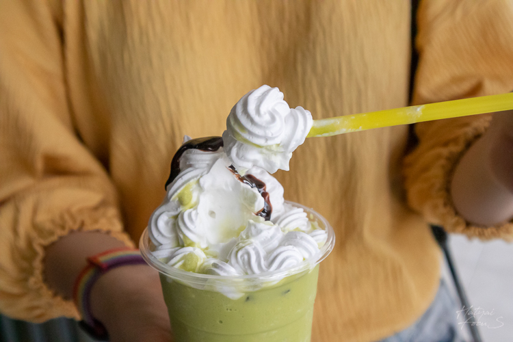 ชาเขียวมัจฉะปั่น วิปครีม มัจฉะแท้ ๆ หวานกำลังดีโดนใจพี่หมีมากจ้า