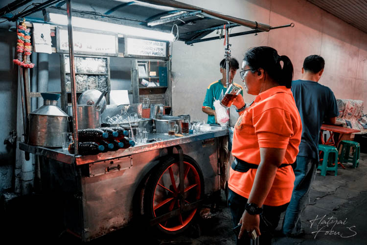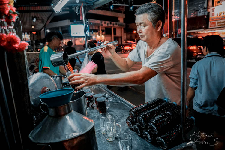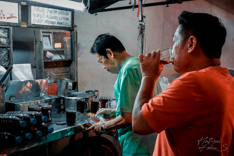 เข้ามาดูใกล้ ๆ ถึงได้รู้ว่าขายน้ำจับเลี้ยงนั่นเอง แต่ที่เด็ดคงจะตรงที่แกขายมานานกว่า 40 ปีแล้วจ้า แถมเป็นสูตรโบราณหาทานยากอีกด้วย