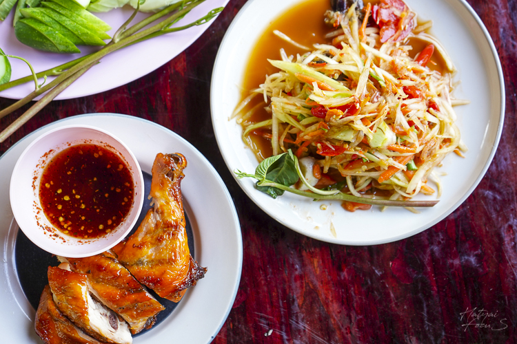 ส้มตำปูปลาร้า กับไก่ย่าง