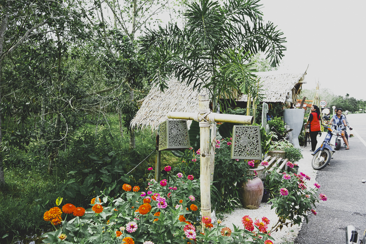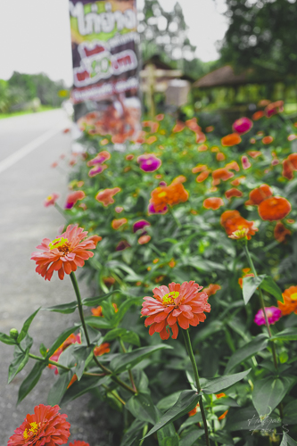 ปลูกดอกไม้ตกแต่งไว้รอบ ๆ ร้าน กำลังบานสวยเชียว