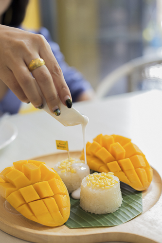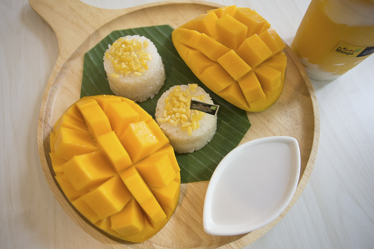 มาร้านนี้ทั้งที เมนูที่ขาดไม่ได้ก็คือเมนูข้าวเหนียวมะม่วง คัดเกรดอย่างดี ที่ทำสด ๆ วันต่อวัน เสริฟด้วยมะม่วงผ่าซีกจัดจานอย่างสวยงาม พร้อมข้าวเหนียวมูล 2 ก้อน โรยด้วยถั่วทองกรอบ ๆ ราดด้วยน้ำกะทิเข้มข้น น่าทานมาก ๆ บอกเลยเข้ากันสุด ๆ เข้าปากคำแรกก็ฟินจนจนต้องป้อนคำต่อไปกันเลยทีเดียว (ถ้าน้ำกะทิไม่พอก็สามารถขอเจ้าของร้านเพิ่มได้เลยพี่เค้าใจดีมั้ก)