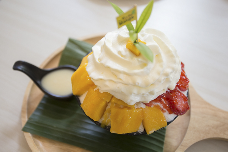 บิงซูทางร้านก็โคตร ๆ จะน่าทาน ด้วยเกล็ดน้ำแข็งเนื้อนุ่ม ๆ ท็อปมาด้วยมะม่วงหั่นเต๋าและสตอเบอร์รี่สด ๆ หั่นเป็นชิ้นบาง ๆ หวานละมุนลงตัวสุด ๆ สายรักของหวานห้ามพลาดเลยทีเดียว