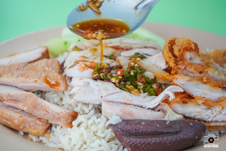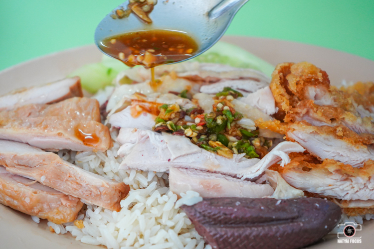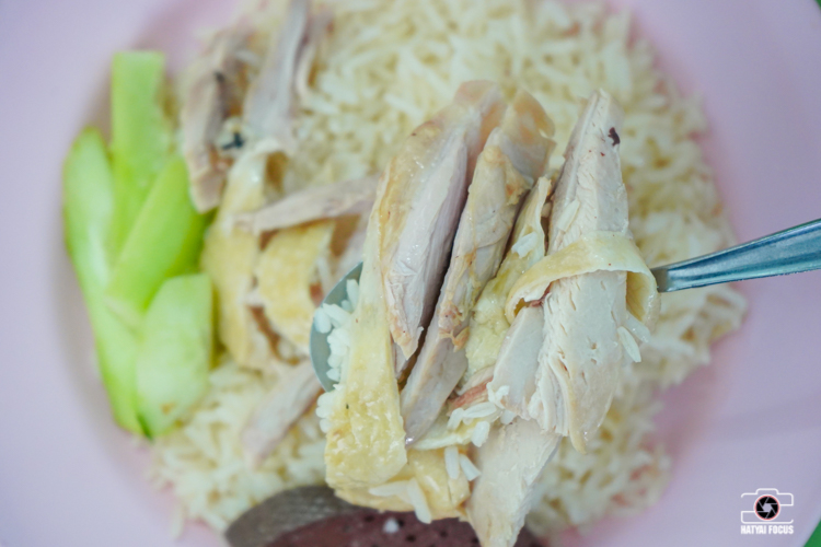 ข้าวมันไก่จะเสิร์ฟมาพร้อมกับน้ำจิ้มสูตรเด็ดของทางร้าน ข้าวไม่แฉะ เมล็ดข้าวสวย ไม่มันมากเกินไป และน้ำซุป หอม ๆ (เราลืมถ่ายมา)