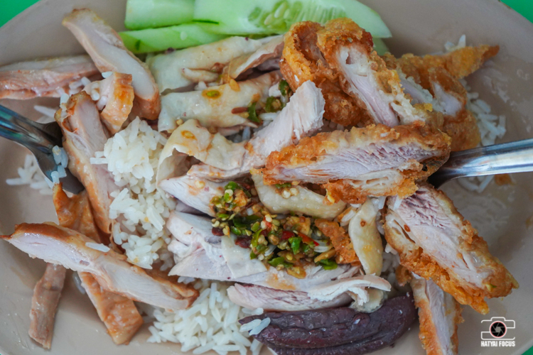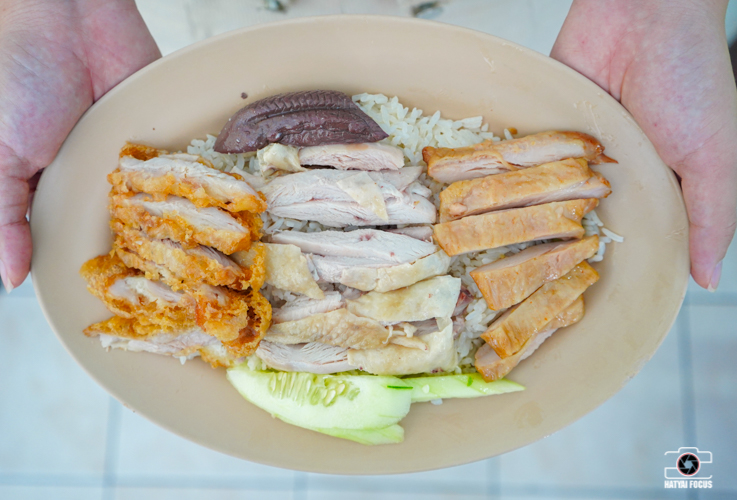 ทีเด็ดของที่ร้านอีกอย่างคือข้าวมันไก่ไซส์ยักษ์ ถาดละ 550 บาท กินได้ 3 - 4 คน ไปลองได้นะ ส่วนเราตัวเล็ก ๆ กินไม่หมดเลยกินจานเล็กดีกว่า