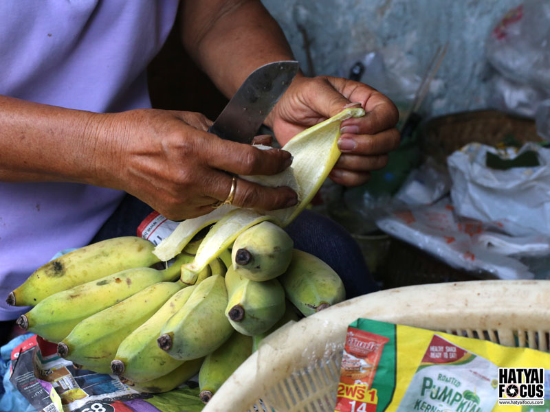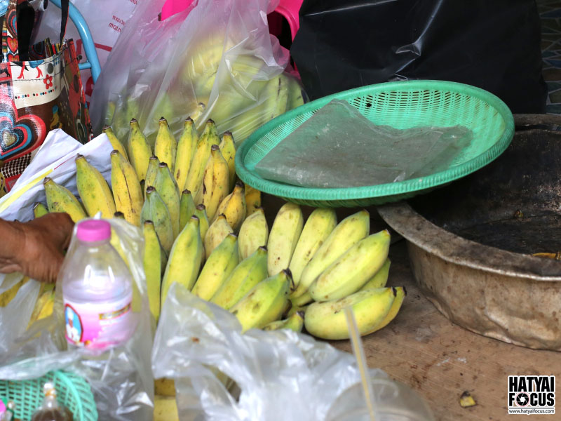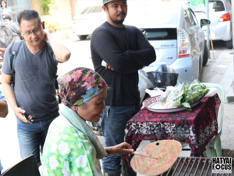 เราสั่งกล้วยนางยาปิ้งตามคำแนะนำของคุณยาย “กล้วยนางยาจะหายากหน่อยลูก ราคาเลยแพง แต่ถ้าใครกินต้องติดใจทุกราย” กัดเข้าไปหนึ่งคำบอกได้เลยว่า ฟิน! กล้วยปิ้งร้อน ๆ ราดน้ำราดหวาน ๆ ทานไปเดินชมเมืองเก่าสงขลา ชิคสุดๆ คุณยายบอกว่า ดีใจมากที่วันนี้ลูกค้าจะเป็นวัยรุ่นเยอะ หันมาทานขนมโบราณ ของอร่อยในตำนานจึงยังคงอยู่