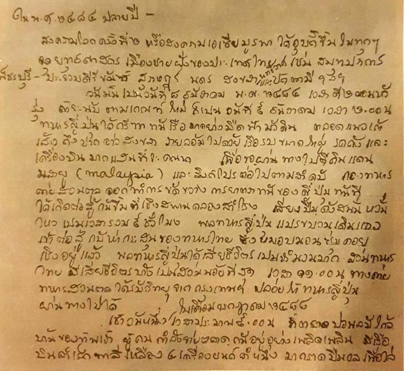 ในปี พ.ศ.2484 ปลายปี สงครามโลกครั้งที่ 2 หรือสงครามเอเซีบบูรพาได้อุบัติขึ้นในทุกจุดยุทธศาสตร์เมืองชายฝั่งของประเทศไทย เช่น สมุทรปราการ เพ็ชรบุรี-ประจวบคีรีขันธ์ สุราษฎร์ นครศรีธรรมราช สงขลา นราธิวาส และ ปัตตานี ฯลฯ