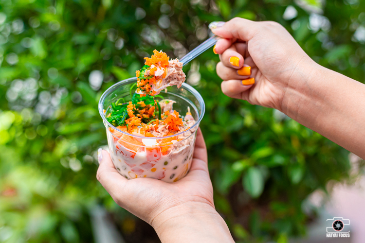 อีกหนึ่งเมนูที่ขอแนะนำกับนี่เลย คอร์นสลัด มีหน้าให้เลือกทั้งทูน่า ปูอัด สาหร่าย และไข่กุ้ง หรือจะใส่รวมก็ได้นะ ราคา 35 บาท