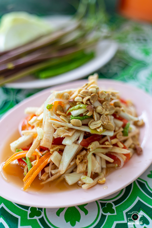 ต่อด้วยตำยอดมะพร้าวอ่อนสด ๆ รสชาติดีใช้ได้เลยจ้า อร่อยกรุบกรอบ 50 บาทเท่านั้น
