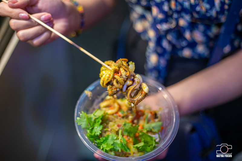 เหลืองสุกน่ากินมาก เนื้อหมึกมีความเด้ง กรุบกรอบ กินพร้อมกับกะหล่ำปลีและน้ำจิ้มเข้ากันมาก แซ่บซี้ดสุดยอดไปเลยจ้า