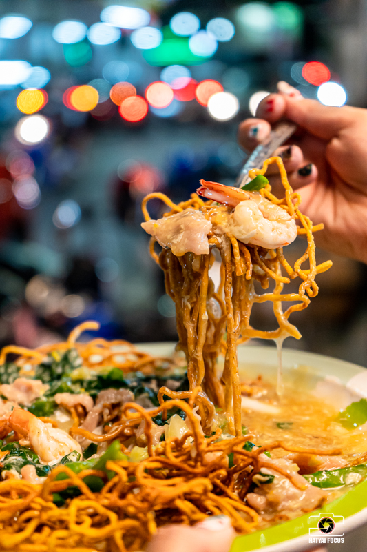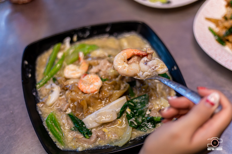 ราดหน้าของที่ร้านจะปรุงรสได้กลมกล่อม ไม่ว่าจะเป็นหมู หรือทะเล คืออร่อยไม่แพ้กันจริง ๆ น้ำราดหน้าจะข้น ๆ ไม่เหนียวจนเกินไป กินพร้อมกับเส้นหมี่กรอบจะมีความกรอบ นุ่ม ออกรสหวานหน่อย ๆ