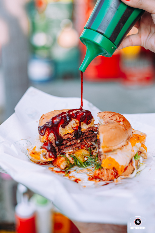 และวันนี้เจ้ขอจัดเป็น เบอร์เกอร์เบิ้ลเนื้อ เพิ่มไข่ เพิ่มชีส ชิ้นเติบ ๆ ไส้โครตแน่น เนื้อไข่ชีสเยิ้ม ๆ ราคาเพียง 75 บาทเองนะ รสชาติหอม อร่อย กลมกล่อม จะราดด้วยซอสพริก มะเขือเทศ มายองเนส ได้หมด แต่เจ้ขอราดด้วยซอสพริกไทยดำนะ เด็ดมากกก เผ็ดร้อน จัดจ้านดี