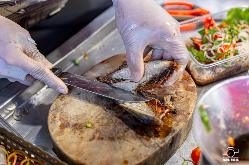 ที่เด็ดของที่ร้านคือยำขนมจีนของที่นี่ เขาใส่ปลาทูทั้งตัวนะจ๊ะพวกเธอ เรียกว่าเนื้อเน้น ๆ