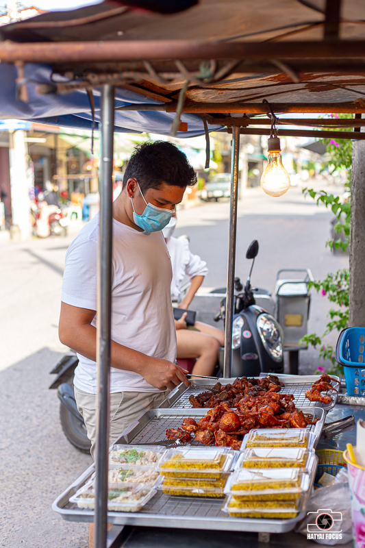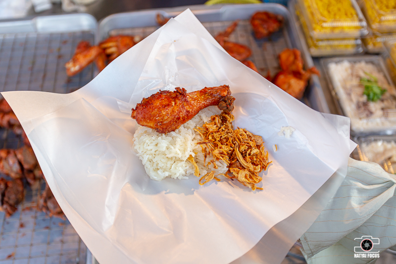 จะซื้อไก่แบบเพรียว ๆ ไปกินกับข้าวสวยก็ได้ หรือกินกับข้าวเหนียวก็เด็ดจ้าา ข้าวเหนียวห่อละ 5-10 บาท ใส่หอมเจียวกรุบกรอบเน้น ๆ โอ้ยยย แค่เห็นก็ฟินแล้ว