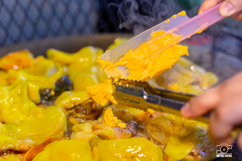 นำหมึกที่หมักเสร็จเรียบร้อยแล้ว มาย่างบนกระทะโรตี ทาเนยฉ่ำ ๆ แบบจุก ๆ บอกเลยว่ากลิ่นหอมมากกกกกกกก