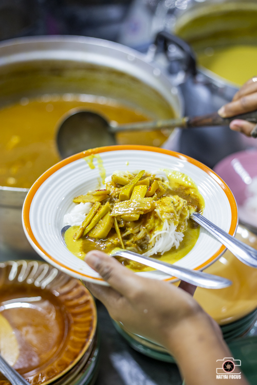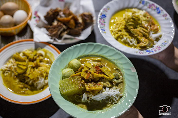 ทางร้านมีทั้งน้ำยาปู แกงไตปลา แกงเผ็ด น้ำยากะทิ แกงเขียวหวานไก่ และน้ำพริกหวานให้เลือก ราคาเริ่มต้นที่ 30 บาทเท่านั้น!